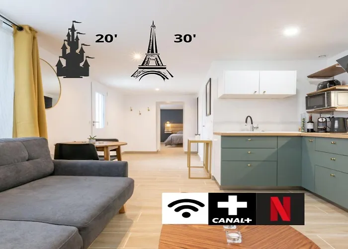 דירת Vaires-sur-Marne Calme Absolu, Terrasse Et Parking Entre Paris Et Disney נמצאת בקרבה של 2.7 ק"מ על Parc de Noisiel. הדירה מורכב מ-1 חדרי שינה, 1 חדרי אמבטיה, ובנוסף מטבח מאובזר.